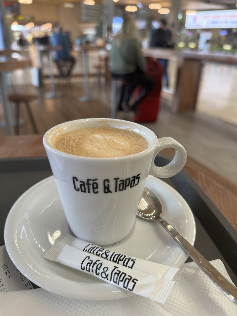 El Pucherete de Mari highlights another aspect of Cafe & Tapas that cannot be missed: the cleanliness of the space and the inviting views of the airport's runways. Picture yourself sipping a beautifully crafted cortado while watching planes take off and land — it's a unique experience that combines the thrill of traveling with the comfort of a cozy café.